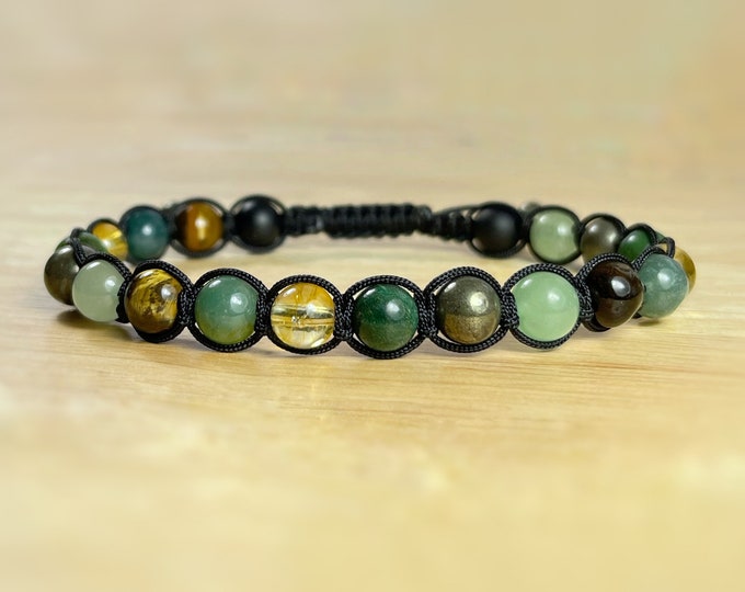 Good Luck Gemstone Bracelet: Jade, Aventurine, Citrine, Pyrite, Tiger's Eye